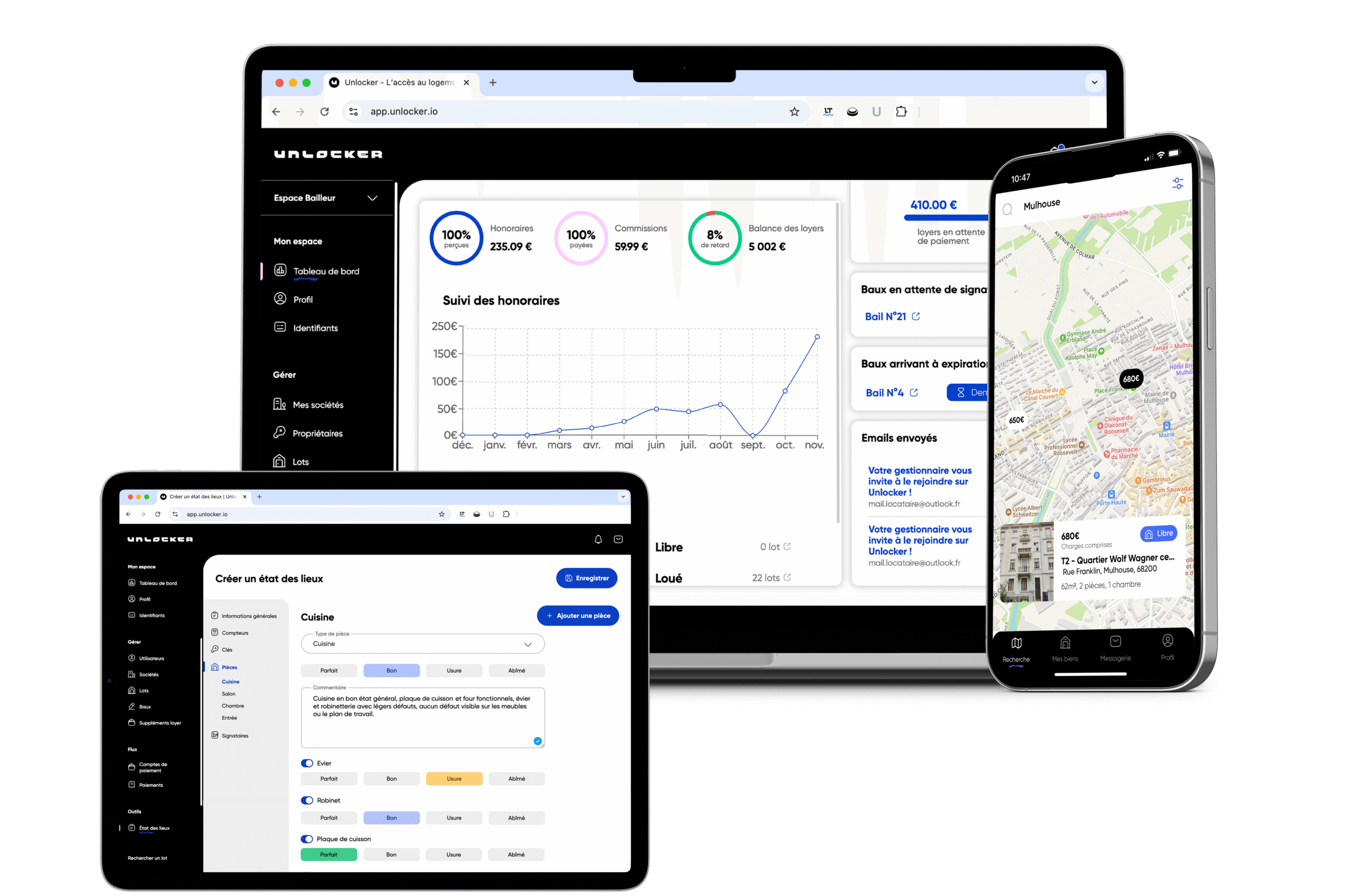 Unlocker est une plateforme tout-en-un dédiée à la gestion locative.