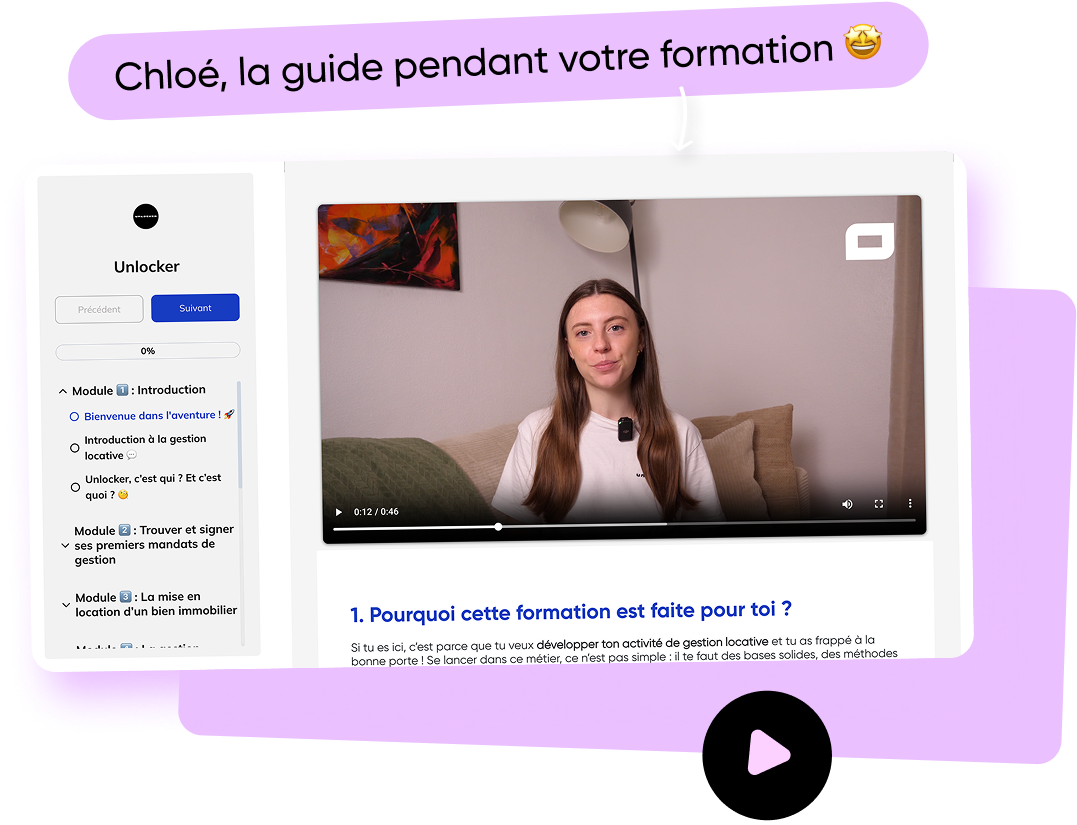 Et ce n’est pas tout : nous mettons également à votre disposition une formation e-learning complète en gestion locative, pour vous aider à monter en compétences et utiliser la plateforme.