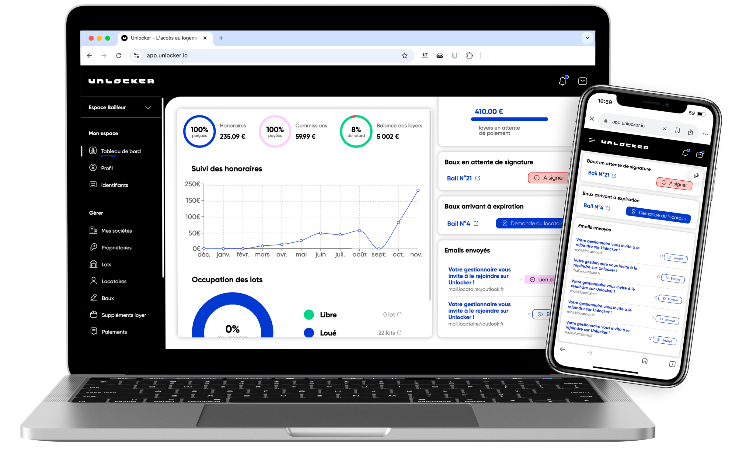 Une fois les flux financiers maîtrisés, Unlocker vous permet de déployer une gestion locative complète, simplement.