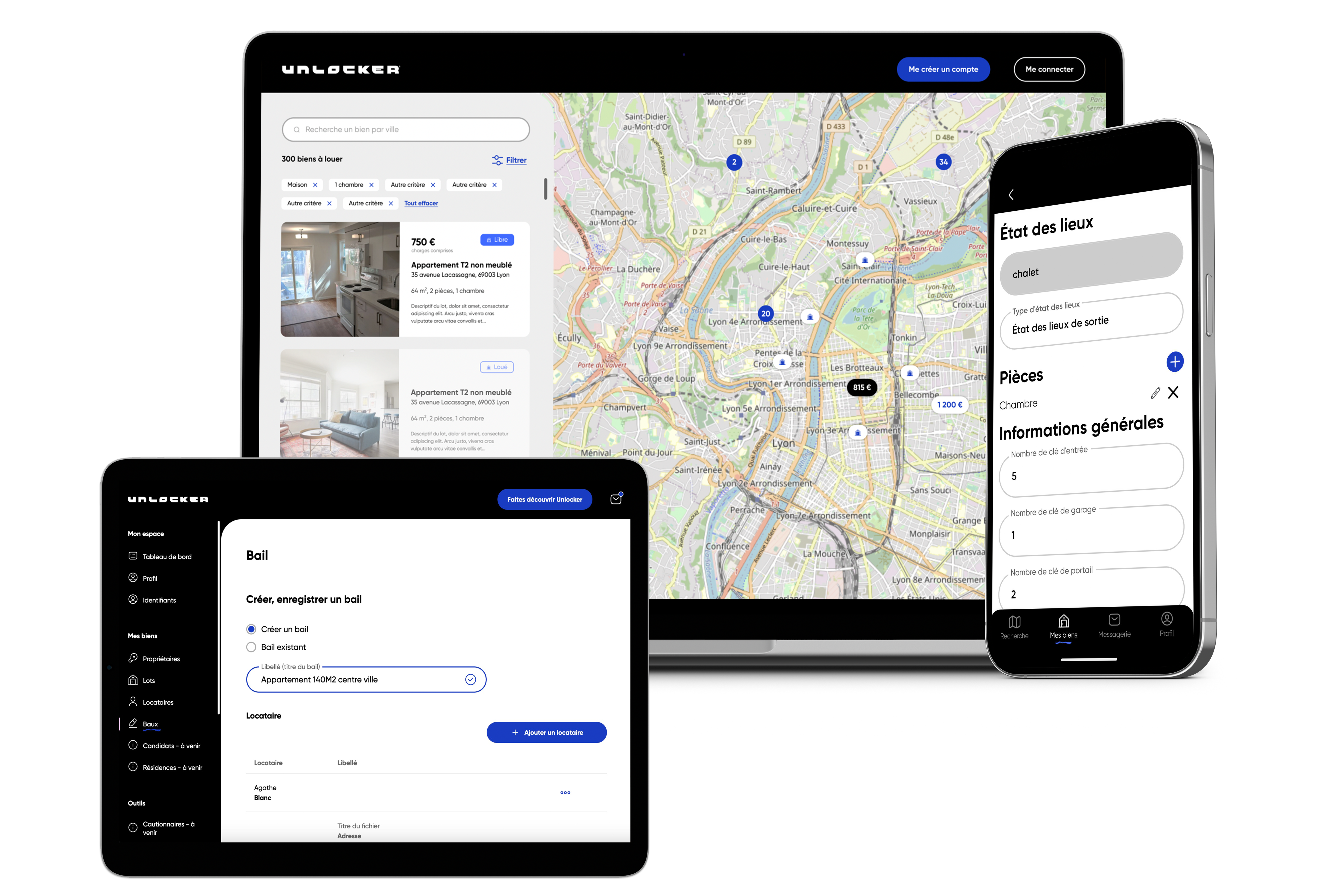 Unlocker® est une solution complète pour les acteurs de l’immobilier, conformément à la loi Hoguet. Elle inclut la mise en ligne des biens, un système d’e-réputation équitable, la réalisation de baux, la création de bilans, une communication fluide entre tous les acteurs, et des outils pour la prospection.