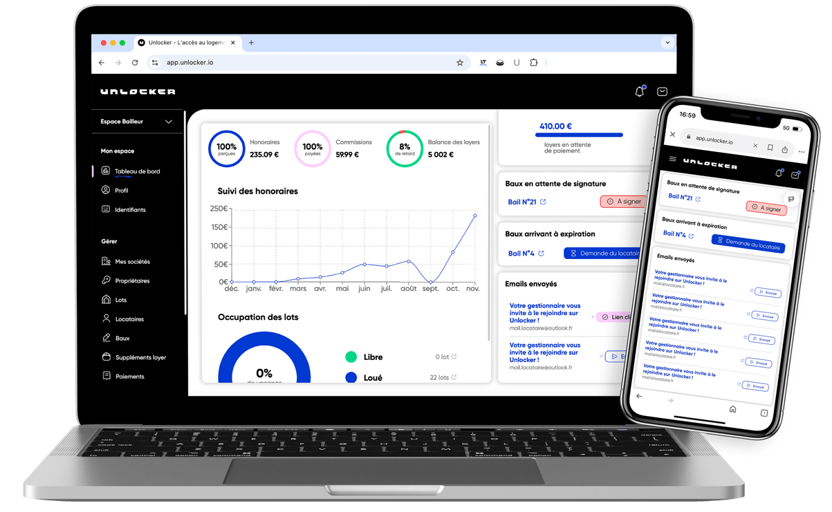 Unlocker transforme vos données en outils de décision. Prenez le contrôle de votre gestion locative avec des données clairs, précises et directement exploitables, à tout moment.